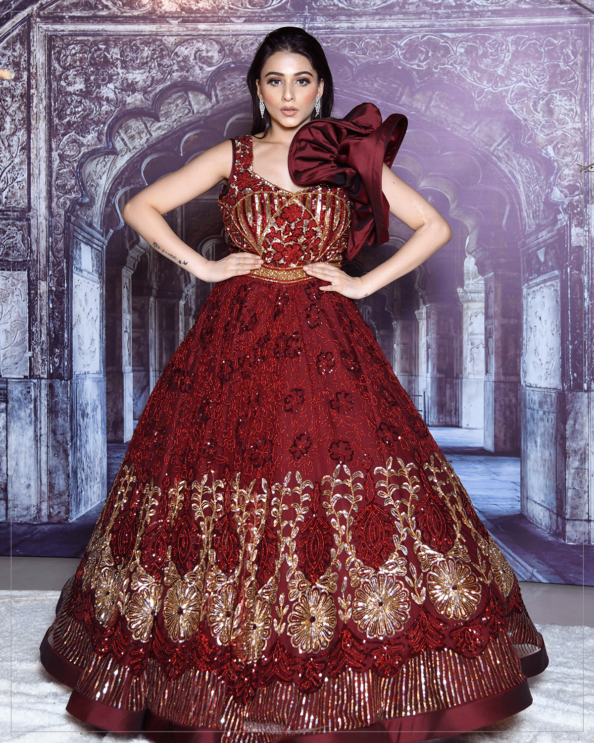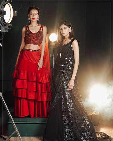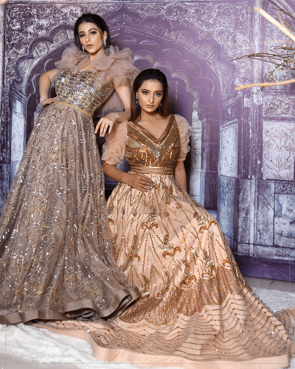 Crafted and cut from layers of organza, tulle laces, and silks accentuate with flounces and sumptuous accessories, this collection beholds its charm in the layers of ruffles, layers, gathers and cold colours. A fine embellishment of gold and silver add to it’s regal charm, making it an extraordinary choice for the phenomenal women who adorn them!