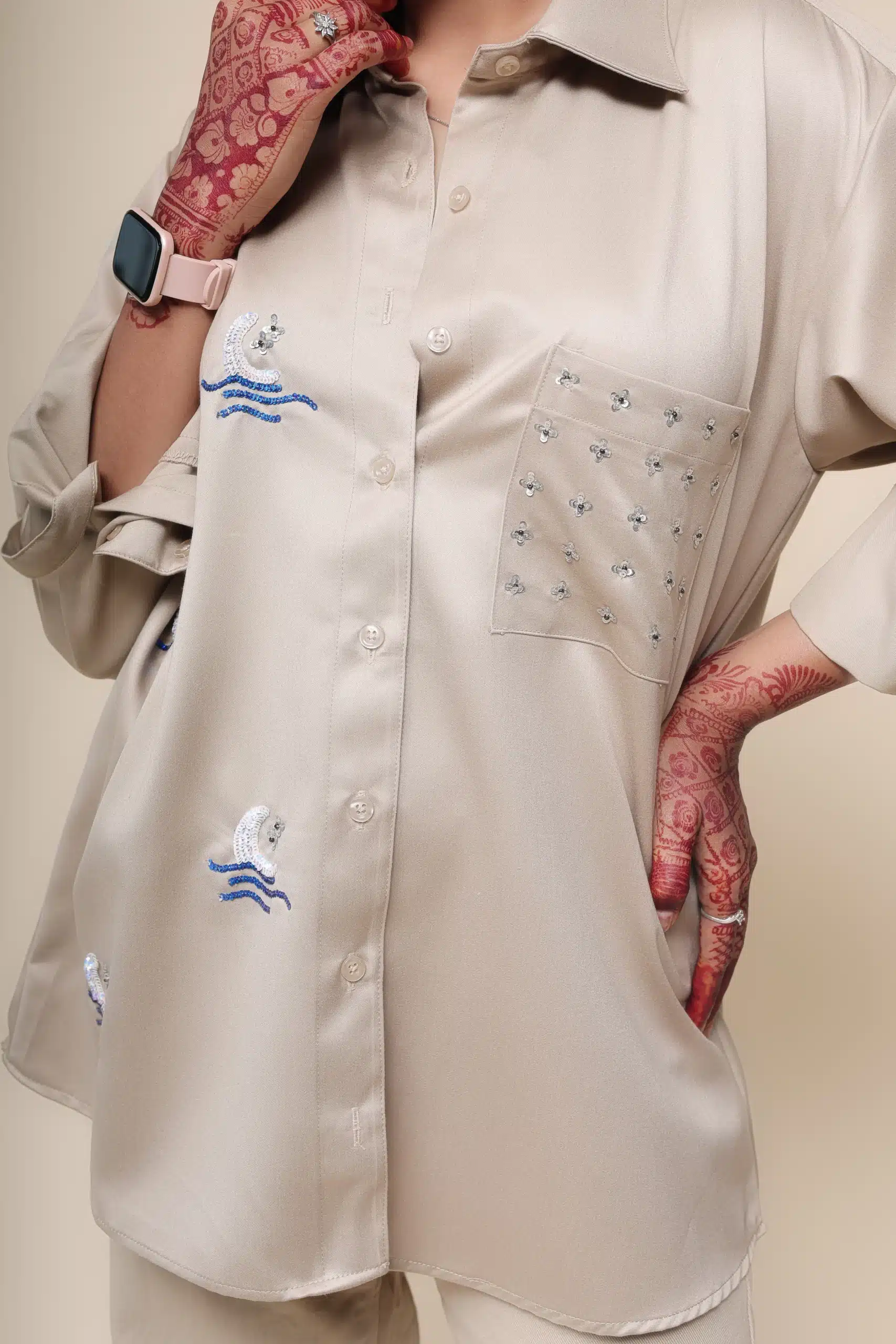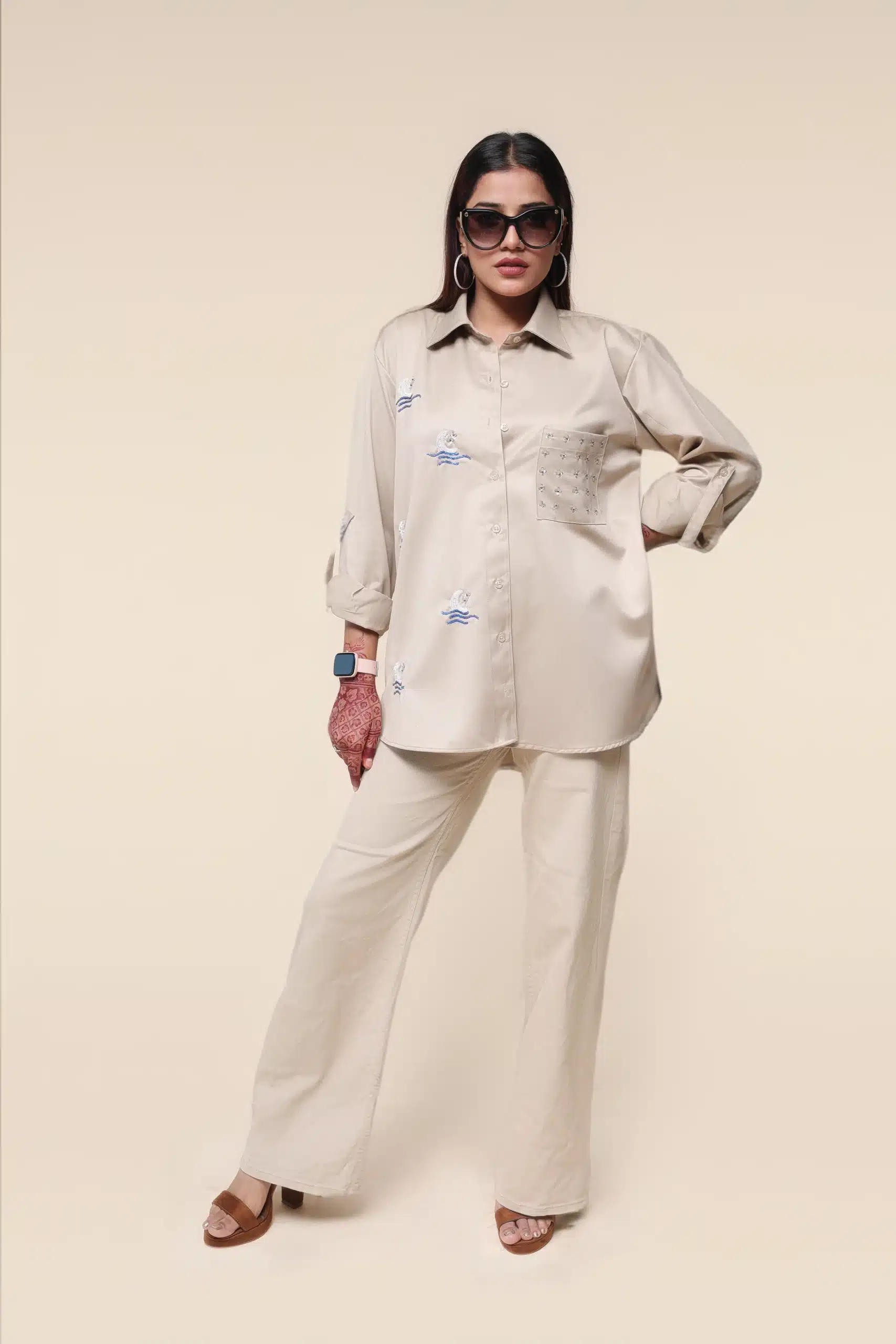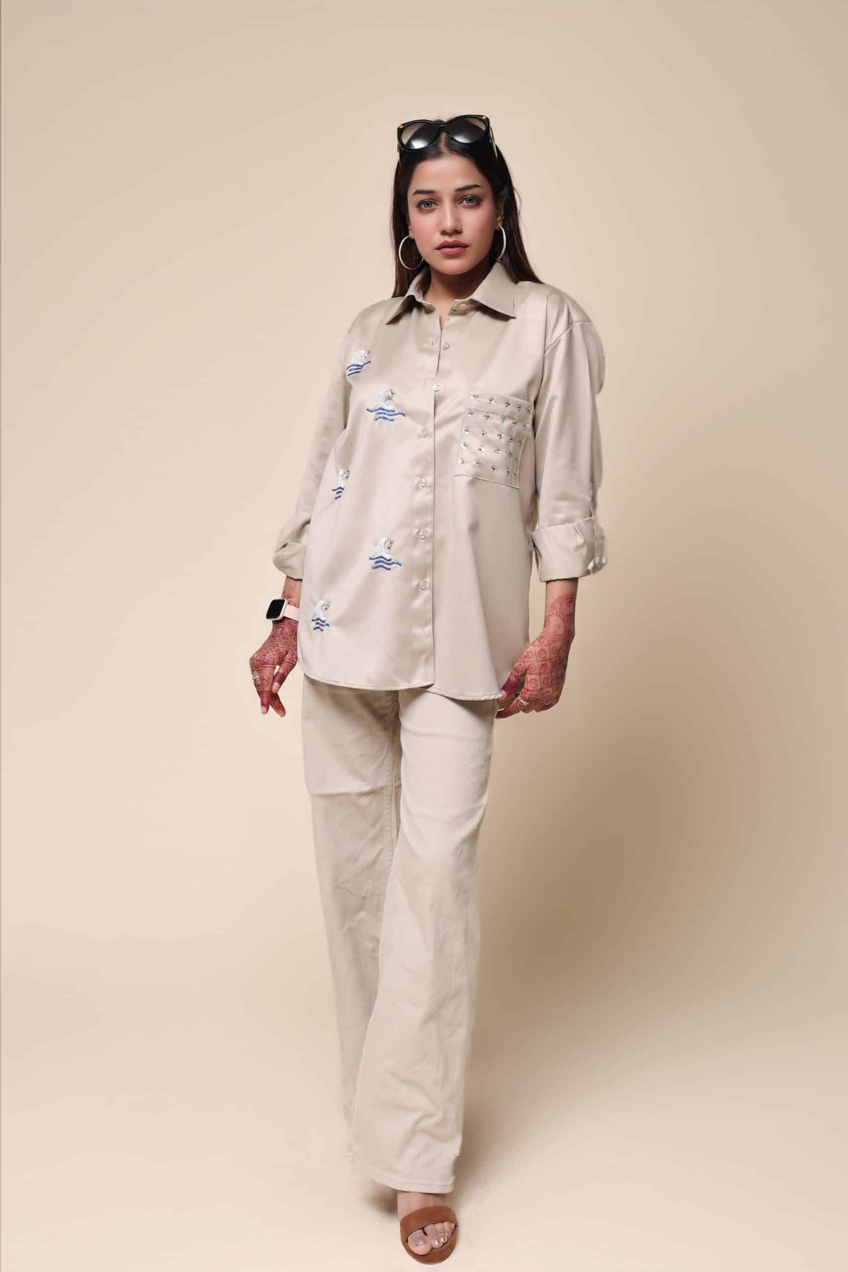 In a timeless beige color, this shirt exudes elegance and refinement. Its subtle charm makes it a versatile option, suitable for any day and any time. The full sleeves are neatly cuffed, while the collared full buttoned front adds a touch of class.