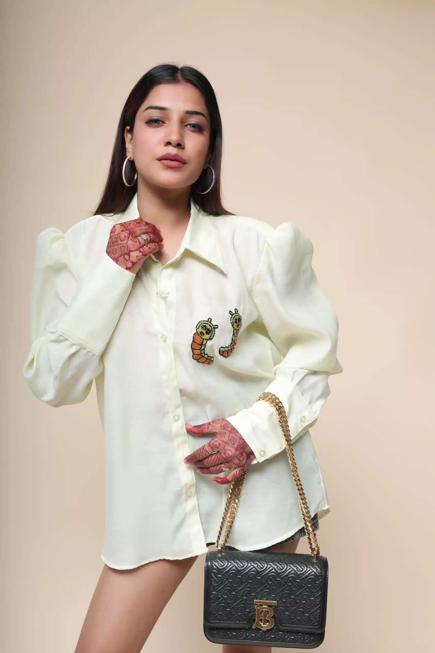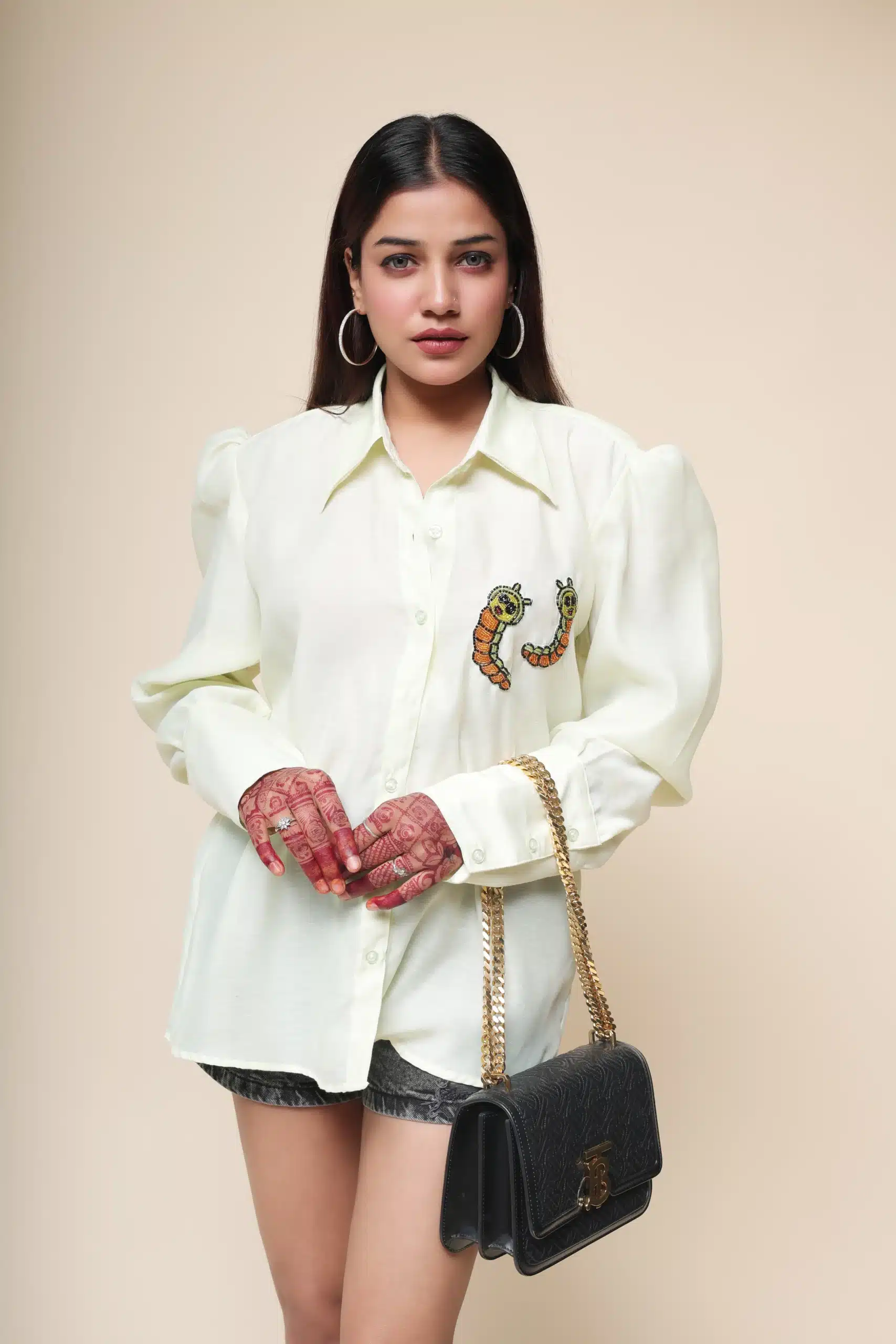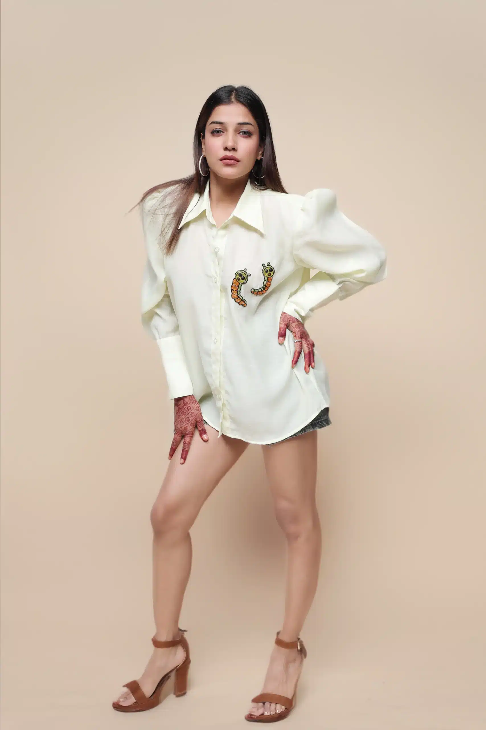 The pastel lime green color adds a touch of freshness, while the smart fit ensures a flattering silhouette. And let’s not forget the adorable embroidery motif of a cute caterpillar, adding a playful twist to your outfit! Elevate your style with this stunning piece that combines comfort and chicness effortlessly.
