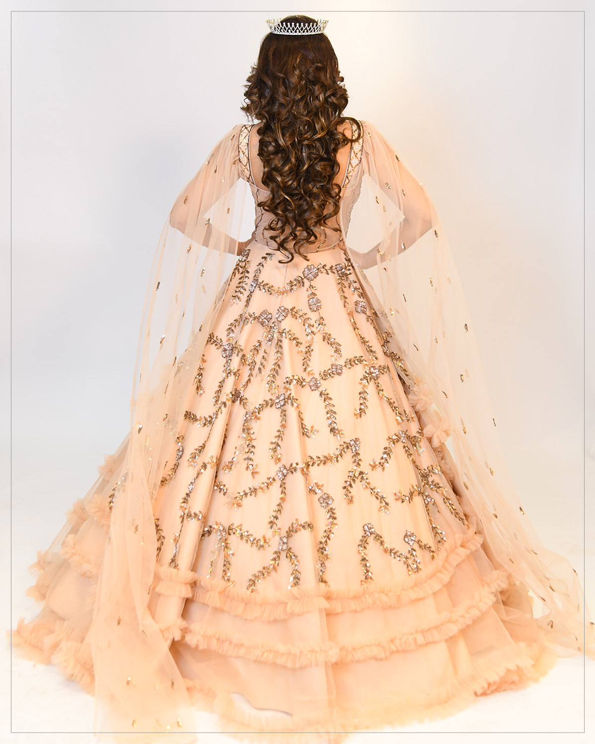 This gown comes with a detachable can can skirt which makes it wearable according to the grandeur of the occasion.